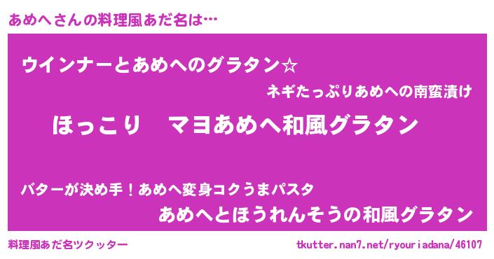 | ヒーロー風カッコイイあだ名 | 『仮面アメダー』『ウルトラあめへマン』 |