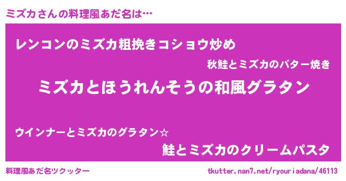 | ヘコむあだ名 | 『ミズカ(笑)』『レバニラ』 |