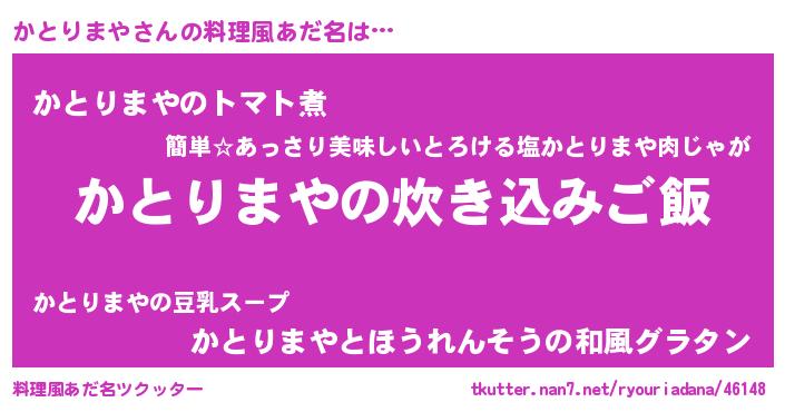 | ヘコむあだ名 | 『かとりまや(爆)』『かとぷりん』 |