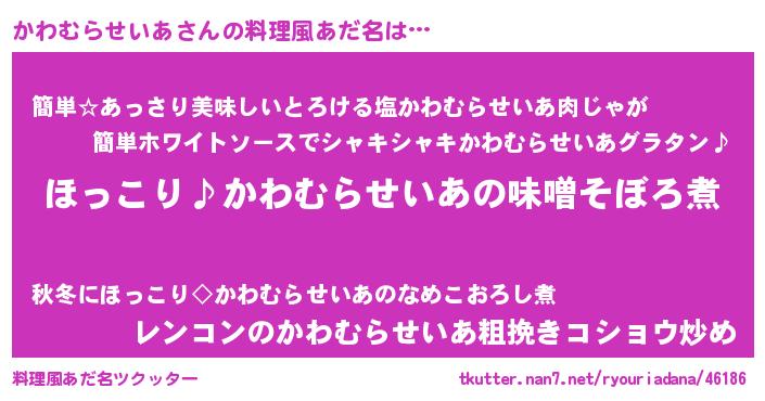 | ヘコむあだ名 | 『かわふぇ~』『かわむらせいあ(爆)』 |