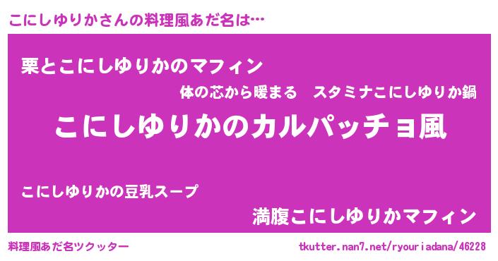 | ヘコむあだ名 | 『こにしゆりか(苦笑)』『豆乳』 |