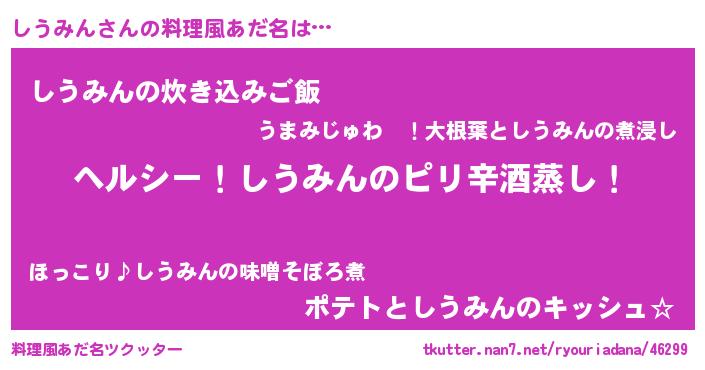 | ヘコむあだ名 | 『しうぷりん』『酢こんぶ』 |