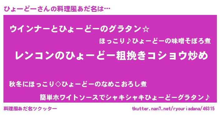| 意味不明あだ名 | 『自称ひょーどー』『ペロリンひょーどー』 |