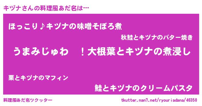 女子向けラノベタイトル風あだ名 | 『キヅナの婚約者』『死神キヅナの再婚』 |