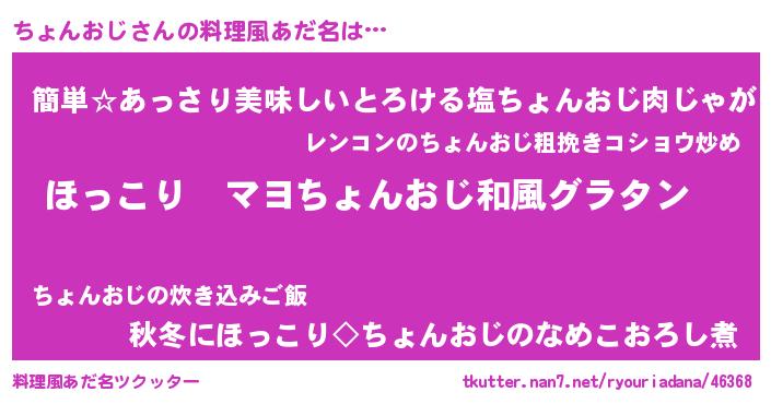 | 男性向けラノベタイトル風あだ名 | 『この素晴らしい世界にちょんおじを!』 |
