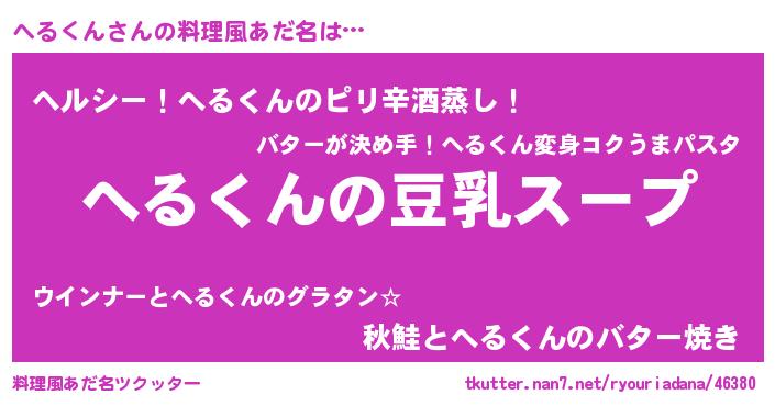 | 女子向けラノベタイトル風あだ名 | 『へるくんは平凡を望む』『闇のへるくん』 |