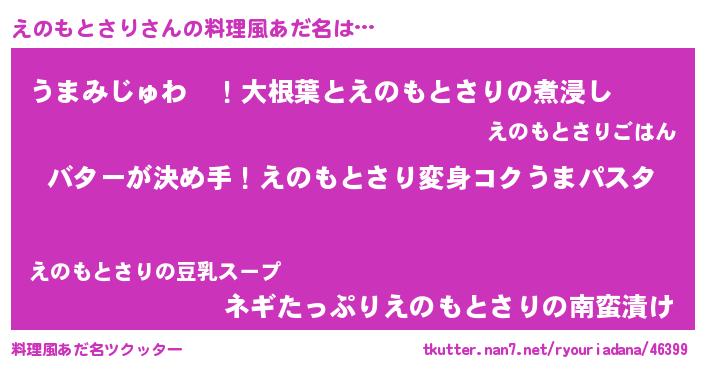 | 男性向けラノベタイトル風あだ名 | 『おまえをオタクにしてやるから、俺をえのもとさりにしてくれ! 』 |