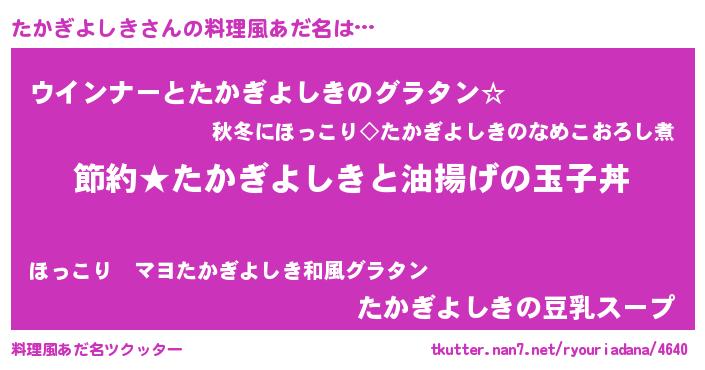 | ヘコむあだ名 | 『たかにー』『なまこ酢』『たかを』 |