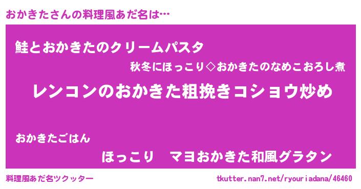 | 女子向けラノベタイトル風あだ名 | 『おかきたアンティーク』 |