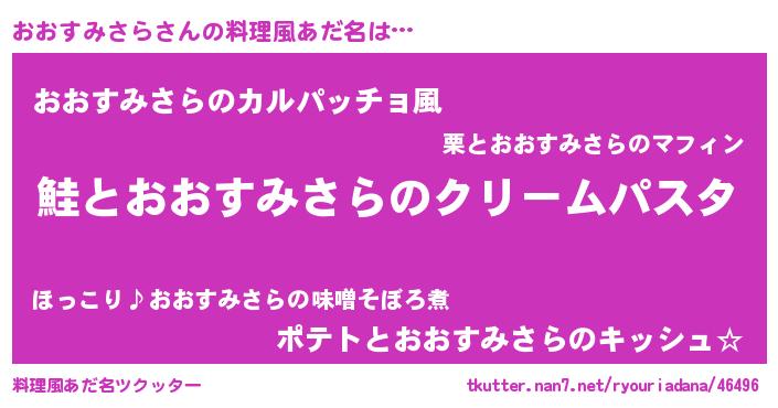 | 男性向けラノベタイトル風あだ名 | 『ノーゲーム・ノーオオスミサラ』 |