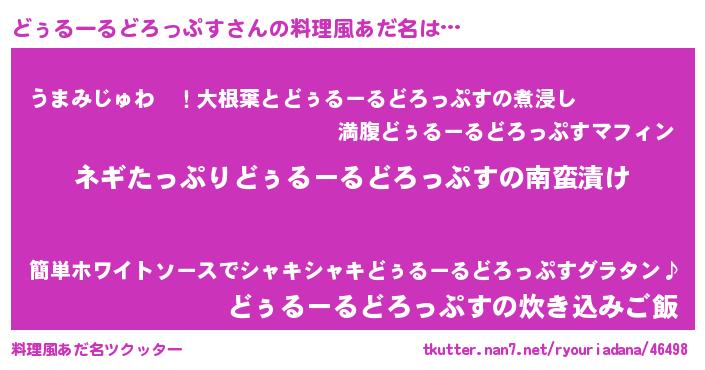 | 男性向けラノベタイトル風あだ名 | 『ドゥルールドロップスアートオンライン』 |