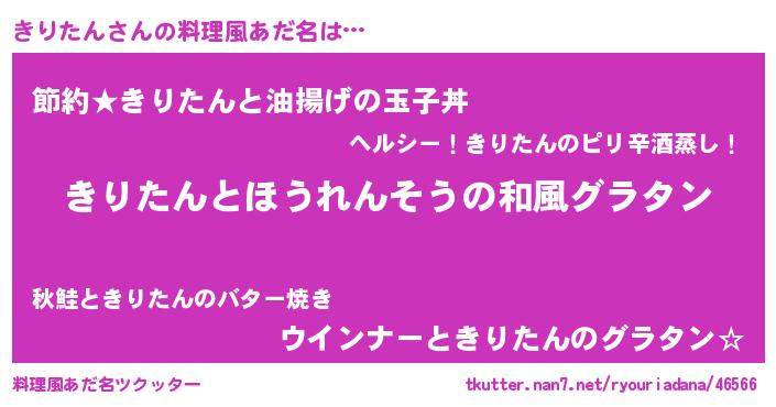 | 女子向けラノベタイトル風あだ名 | 『きりたんの玉の輿計画!』 |