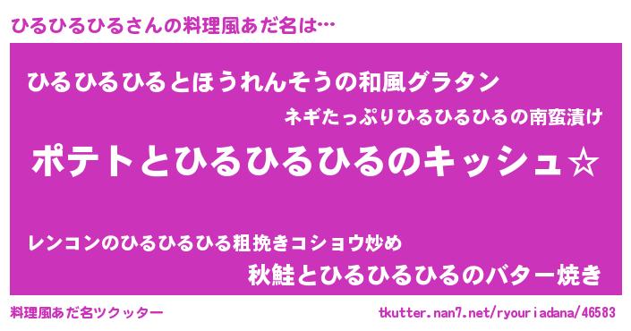 | 女子向けラノベタイトル風あだ名 | 『ひるひるひるの卵を拾いまして』 |