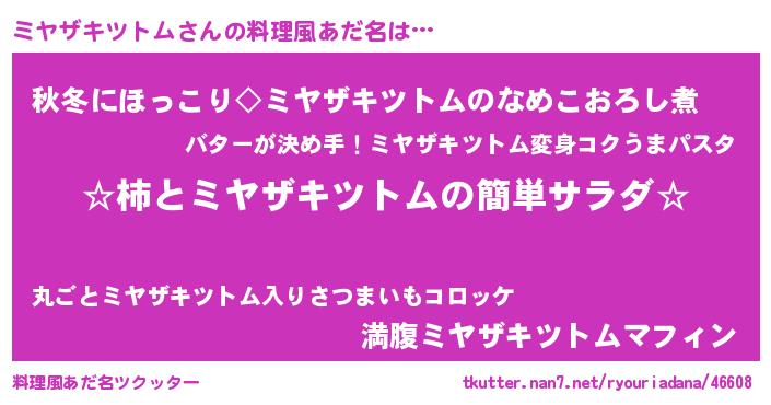 | ヘコむあだ名 | 『ミヤザキツトム(爆)』『ミヤにゅー』 |