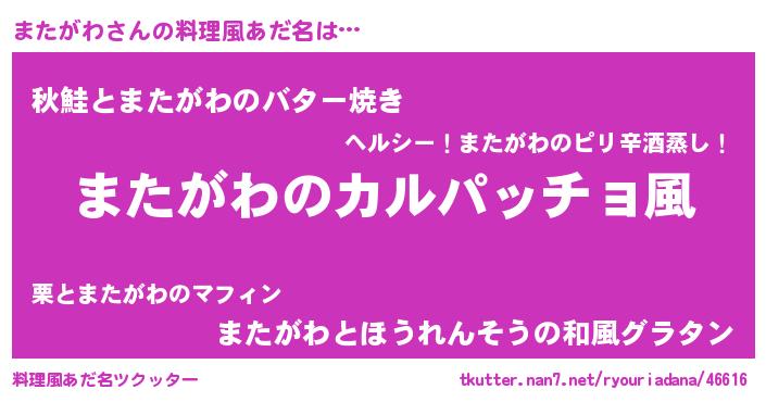 | 女子向けラノベタイトル風あだ名 | 『またがわが死なない童話 林檎のまたがわの診療簿』 |