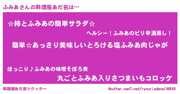 | ヘコむあだ名 | 『ふみあ(笑)』『ふみにー』『ふみを』 |