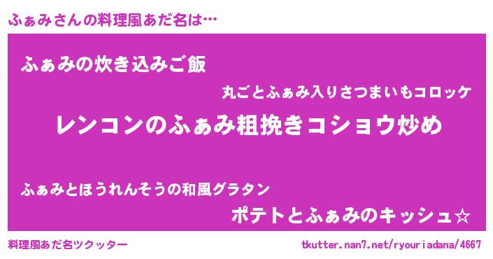 | 女子向けラノベタイトル風あだ名 | 『ふぁみなんてお断りですっ。』 |