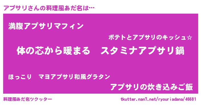 | 意味不明あだ名 | 『アプサリフォーエバー』 |