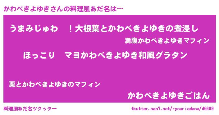 | ヘコむあだ名 | 『レバニラ』『かわべきよゆき(震え声)』 |