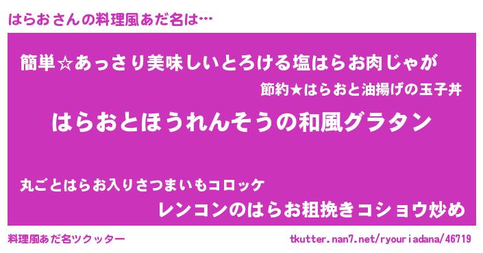 | ヘコむあだ名 | 『はらお(笑)』『はらもー』 |