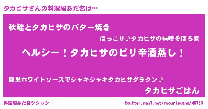 | 男性向けラノベタイトル風あだ名 | 『Re:タカヒサから始める異世界生活』 |