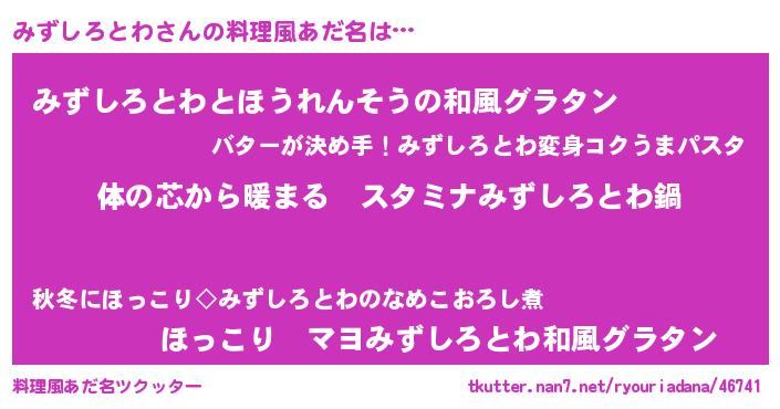 | 胡散臭い通販商品みたいなあだ名 | 『幸せが訪れる高級そうな壺…その名も「みずしろとわ」』 |