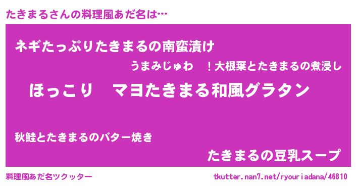 | 男性向けラノベタイトル風あだ名 | 『この素晴らしい世界にたきまるを!』 |