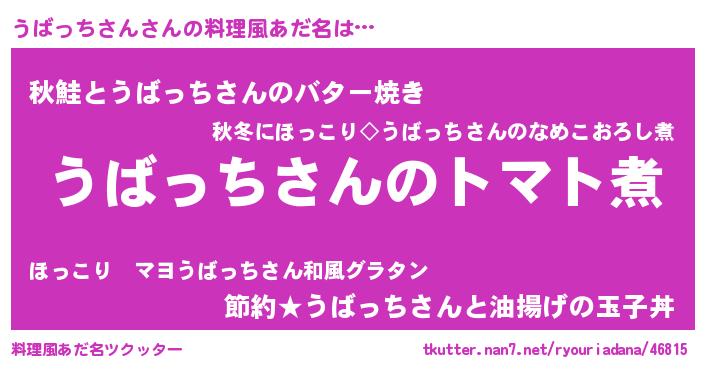 | ヒーロー風カッコイイあだ名 | 『正義の使者うばっちさん』 |