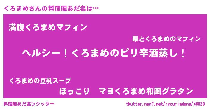 | 男性向けラノベタイトル風あだ名 | 『Re:くろまめから始める異世界生活』 |