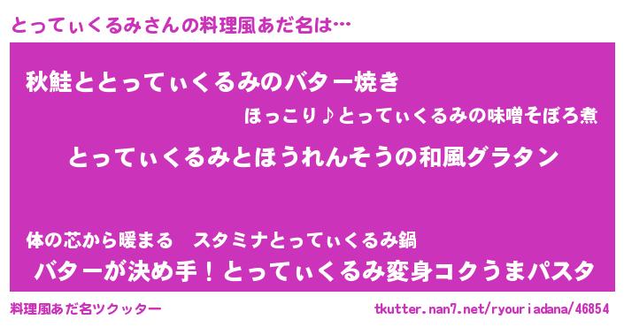 | 胡散臭い通販商品みたいなあだ名 | 『来世でも幸せになれる水素水…その名も「とってぃくるみ」』 |