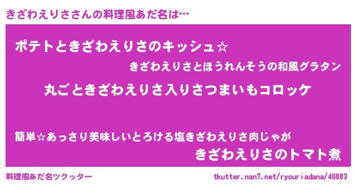 | 意味不明あだ名 | 『住所不定無職きざわえりさ(74歳)』 |