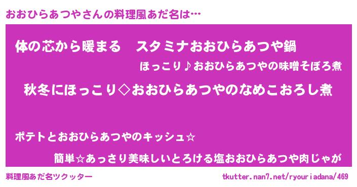 | 意味不明あだ名 | 『おおひらあつやフォーエバー』 |