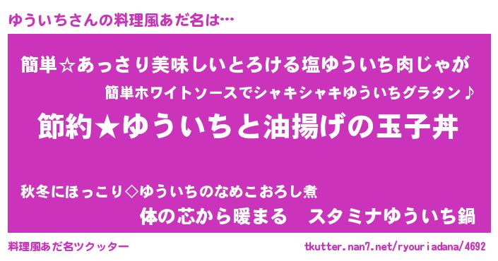 | 意味不明あだ名 | 『ペロリンゆういち』『永久保存ゆういち』 |