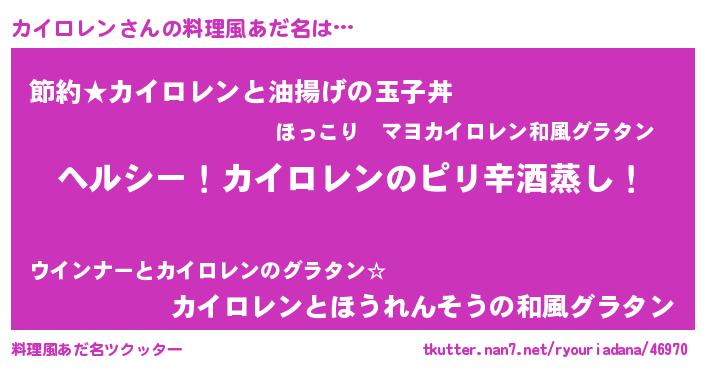 | ヘコむあだ名 | 『カイもー』『なまこ酢』『カイっ子』 |