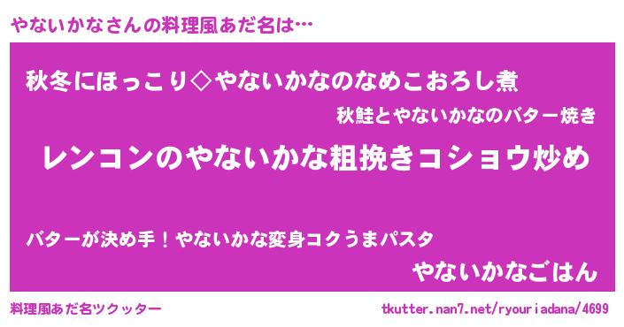 | ヘコむあだ名 | 『やないかな(爆)』『やなっふぃ~』 |
