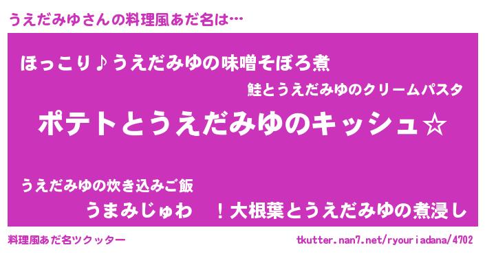 | 胡散臭い通販商品みたいなあだ名 | 『伝統あるサプリメント…その名も「うえだみゆ」』 |