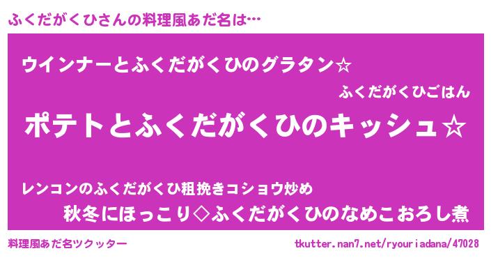 | ポケモン風あだ名 | 『ヒフクダガクヒ』『フクダダネ』 |