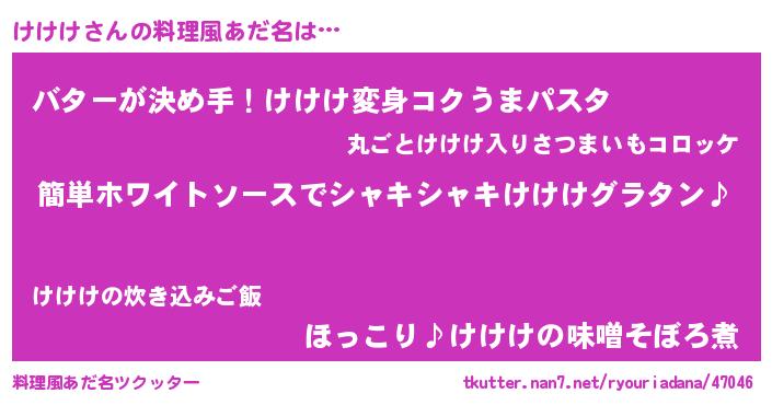 | ヒーロー風カッコイイあだ名 | 『炎刃騎士ケケ』『正義の使者けけけ』 |