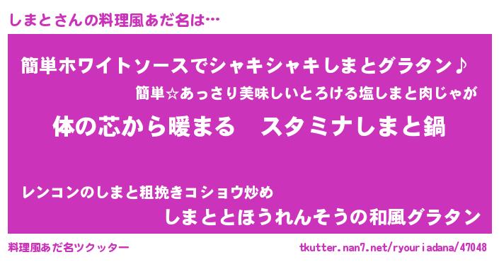 | ヘコむあだ名 | 『つくし』『しまを』『しまっふぃ~』 |