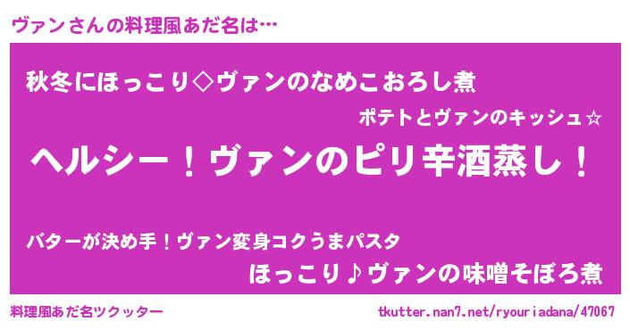 | 意味不明あだ名 | 『自称ヴァン』『ペロリンヴァン』 |