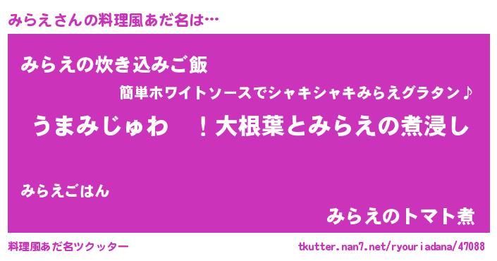 | 意味不明あだ名 | 『みらえフォーエバー』『ニラ科みらえ属』 |