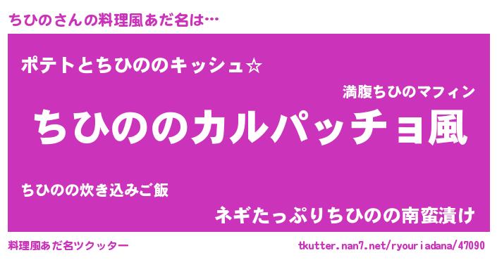 | ポケモン風あだ名 | 『チーヒイ』『ヒチヒノ』『ゼニチヒ』 |