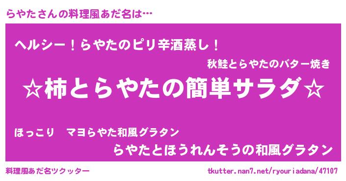 | ヘコむあだ名 | 『らやた(苦笑)』『らやにー』 |