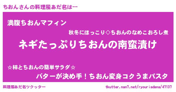 | 意味不明あだ名 | 『ペロリンちおん』『永久保存ちおん』 |