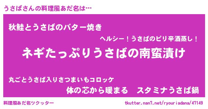 | ヘコむあだ名 | 『うさにー』『うさば(小並感)』 |