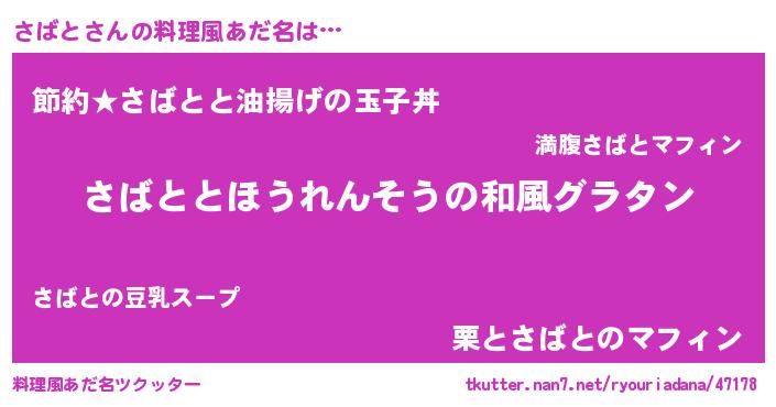 | 女子向けラノベタイトル風あだ名 | 『さばとの玉の輿計画!』 |