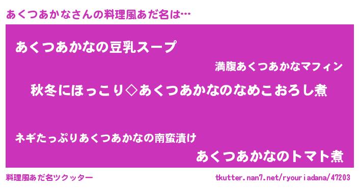 | 欧米人風あだ名 | 『アンジェラ・あくつあかな』 |