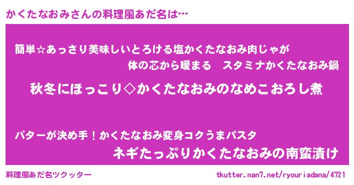 | 胡散臭い通販商品みたいなあだ名 | 『前代未聞の健康食品…その名も「かくたなおみ」』 |