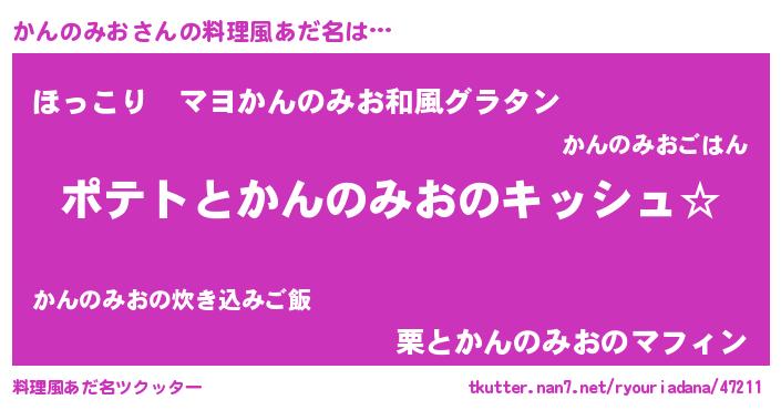 | 女子向けラノベタイトル風あだ名 | 『かんのみおの卵を拾いまして』 |