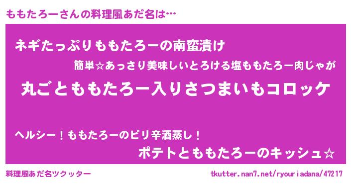 | 意味不明あだ名 | 『住所不定無職ももたろー(7歳)』 |